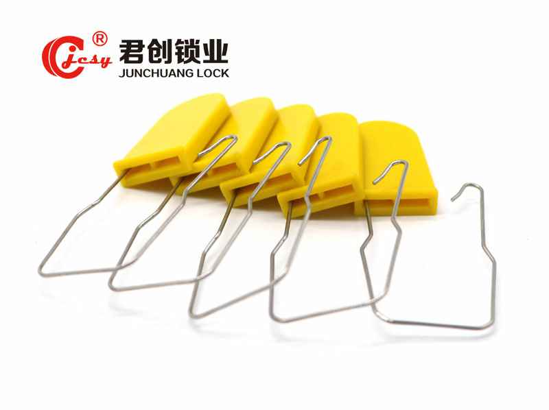 此产品采用改性PP料注塑成型,锁芯里部放置弹簧钢片、再通过焊接而成。 字为烫印或激光标刻、公司标志或名称、流水编码、条形码等,一拉紧型、易施封、易安装, 锁后可用钢丝剪移除。